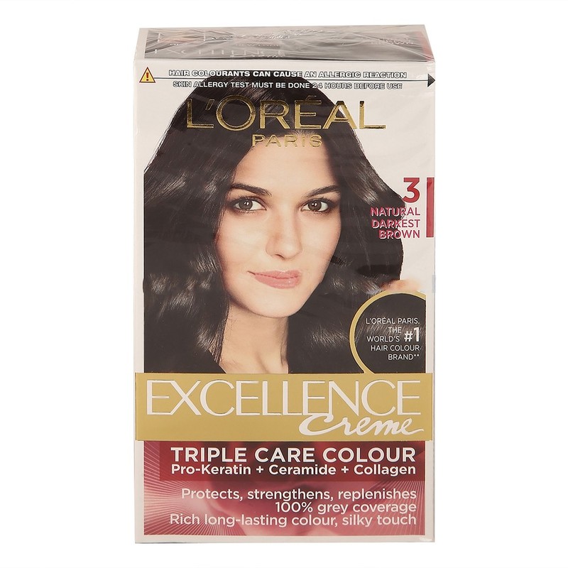 Loreal Paris Excellence Creme Hair Color is a triple care colour with triple care formula. 100 percent grey coverage from root to tips. Stronger hair, 85 percent more resistant to Brushing. For a beautifully blended colour that complements your look, without a grey in sight. Rich, even, long lasting hair colour with a soft and silky touch. Excellence Creme hair colour triple protection means three ways to care for your hair: ceramide protects, pro-keratin strengthens & collagen replenishes. In this pack you will find: the protective serum, colouring creme and developer and conditioner. . 100% resistant grey coverage. Clean and easy preparation and application. Rich, radiant, gorgeous color all with Excellence? exclusive Non-drip Creme. Nourishing hair color.