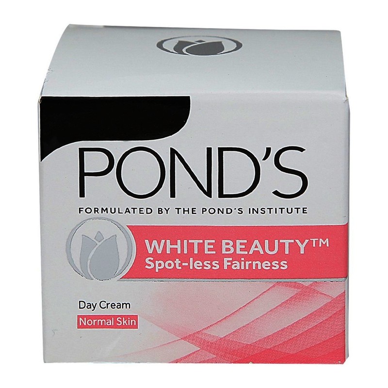 In today?s harsh sun, even just 10 minutes outside can lead to stubborn dark spots. Presenting Pond?s White Beauty, a revolutionary anti-spot solution bought to you by the Pond?s Institute. It?s anti-spot formula with Pro-Vitamin B3 is clinically proven to fade stubborn dark spots from within. Pro-vitamin B3 is a potent skin lightening agent proven to reduce stubborn dark spots from within to reveal beautiful and spot-less skin from outside. It lightens skin and dark spots by inhibiting the transfer of melanin to the surface of the skin revealing a clear and translucent spot-less complexion. It Now comes with SPF15 formula which blocks dark spot-causing harmful UV A, UV B sun rays. Take pearl sized amount of Pond?s White Beauty day cream onto your fingers. Apply a few dots of cream on your dark spots first, followed by rest of forehead, Nose, both sides of cheek, chin and either side of neck. Massage evenly so that cream spreads equally and penetrates deep into your skin, especially dark spots. Do this every day to see your spot-less fair skin with a difference. Fades stubborn dark spots, gives you spot-less fairness- Pond?s White Beauty day cream. For best results, use daily along with Pond’s White Beauty face wash.